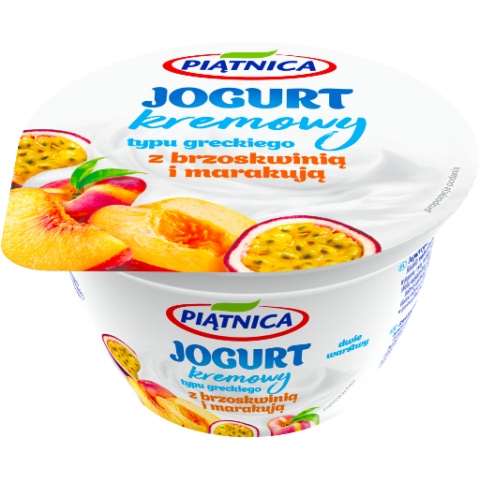 Kremowy jogurt z brzoskwinią i marakują to prawdziwa przyjemność smaku dla wielbicieli jogurtów greckich oraz klasycznych jogurtów owocowych. Charakteryzuje się wysoką zawartością białka. Baza jogurtu powstaje wyłącznie z pasteryzowanego mleka i żywych kultur bakterii jogurtowych - bez mleka w proszku, żelatyny czy też innych substancji zagęszczających.